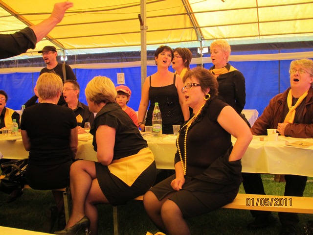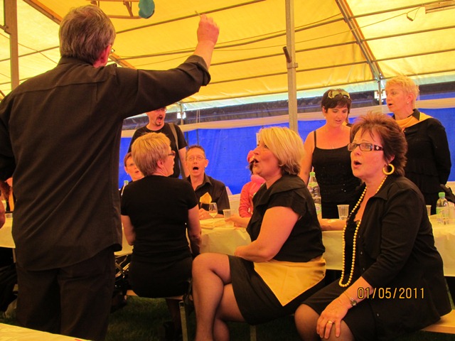 Mais ce n'est pas tout..... une fois bien mangé, bien bu aussi.... (avec la chaleur, attention à la déshydratation !!) on se prépare pour donner un concert de haute qualité, en plein air: